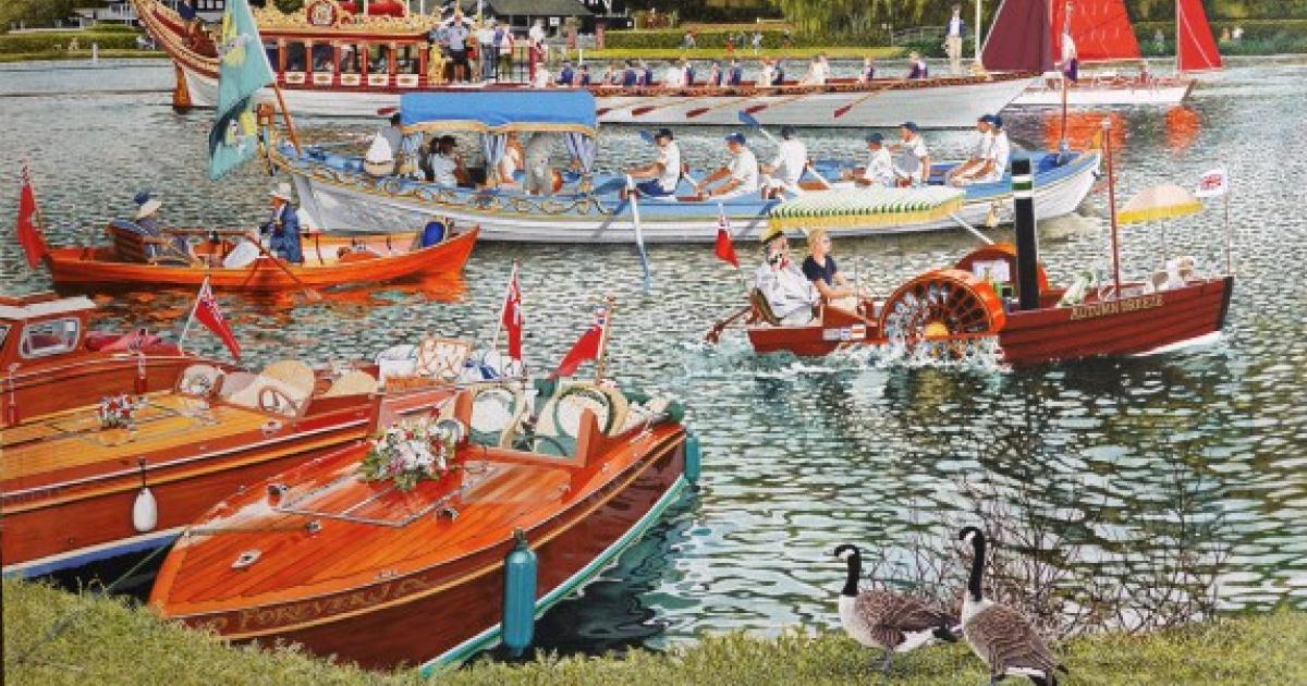 It depicts the Thames Traditional Boat Festival, which was held in Henley every year for 41 years until last year when it was cancelled due to the coronavirus pandemic.