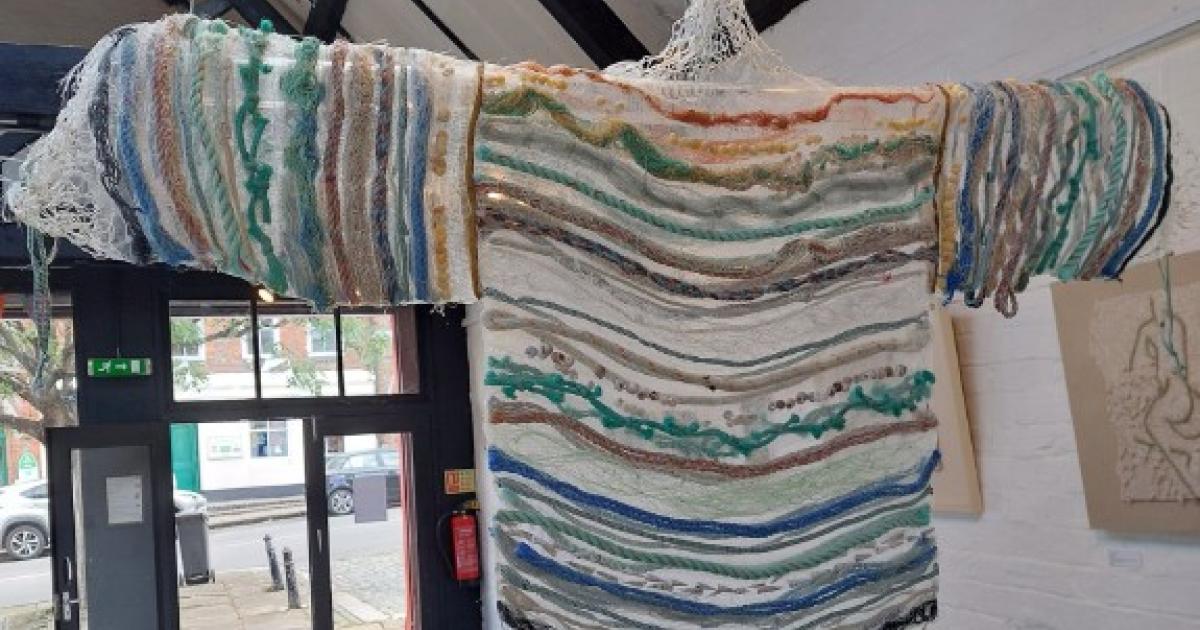 Recently, a group of textile artists had a show that I visited. It was all very interesting but I was particularly drawn to a piece called Trapped by Jennifer Jones, which is a hand-woven art piece aimed at highlighting the problems caused by ghost gear.