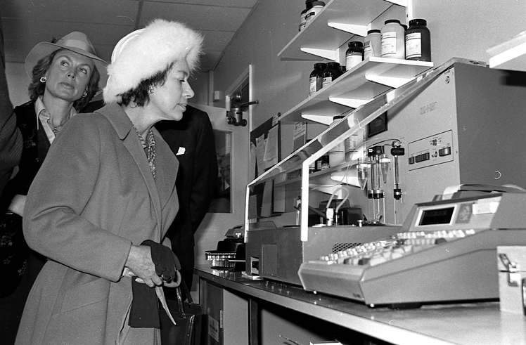 Princess Margaret was given a guided tour of the laboratories and the Institute of Medical Research in Huntercombe Lane South.