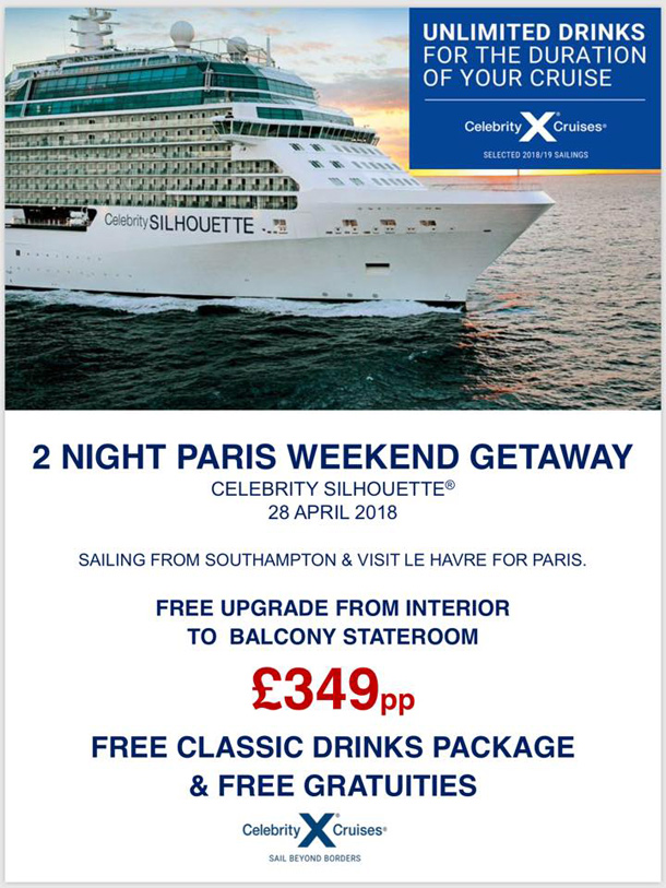 Two-night Paris weekend getaway with Celebrity Cruises