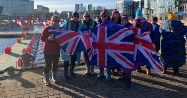 They wore swimming costumes, swim hats and goggles but wetsuits were not permitted even though the water temperature didn’t get above 1.5C.