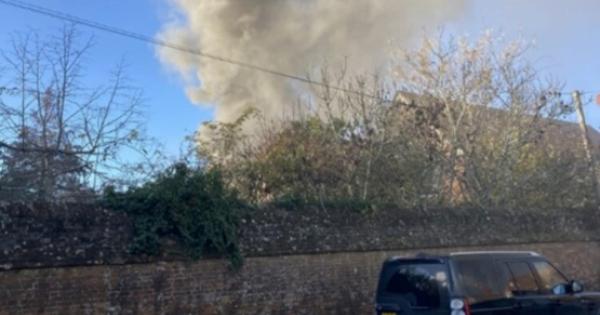 A plume of thick smoke could be seen billowing from the two-storey building, near to St Mary’s Church.