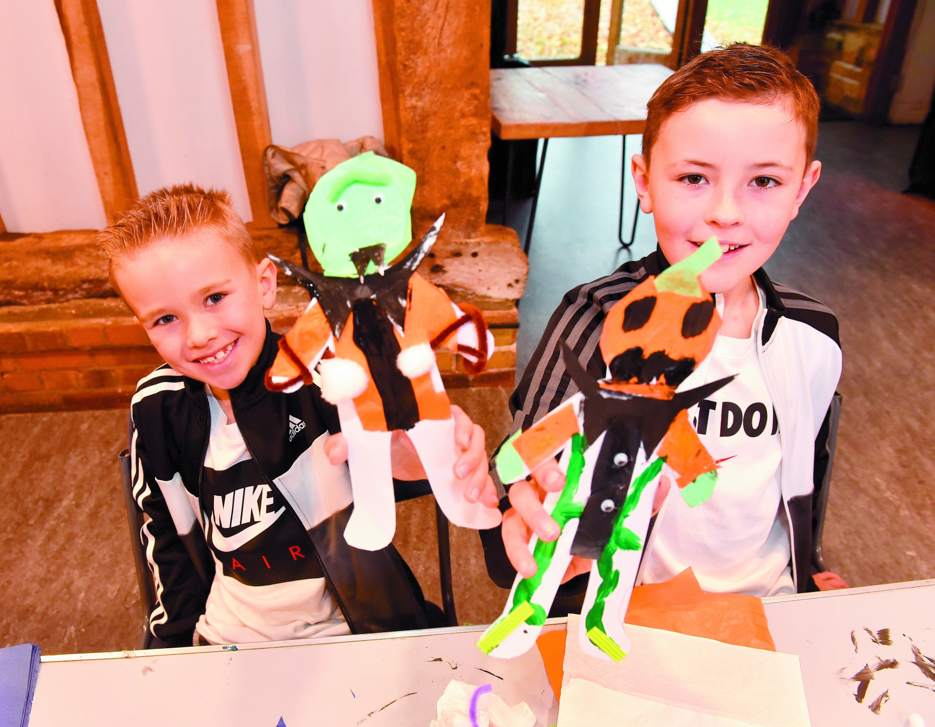 Pictured: Frankie Keogh, seven, and Bobby Keogh, nine, enjoy the Halloween-themed arts and craft session at Norden Farm