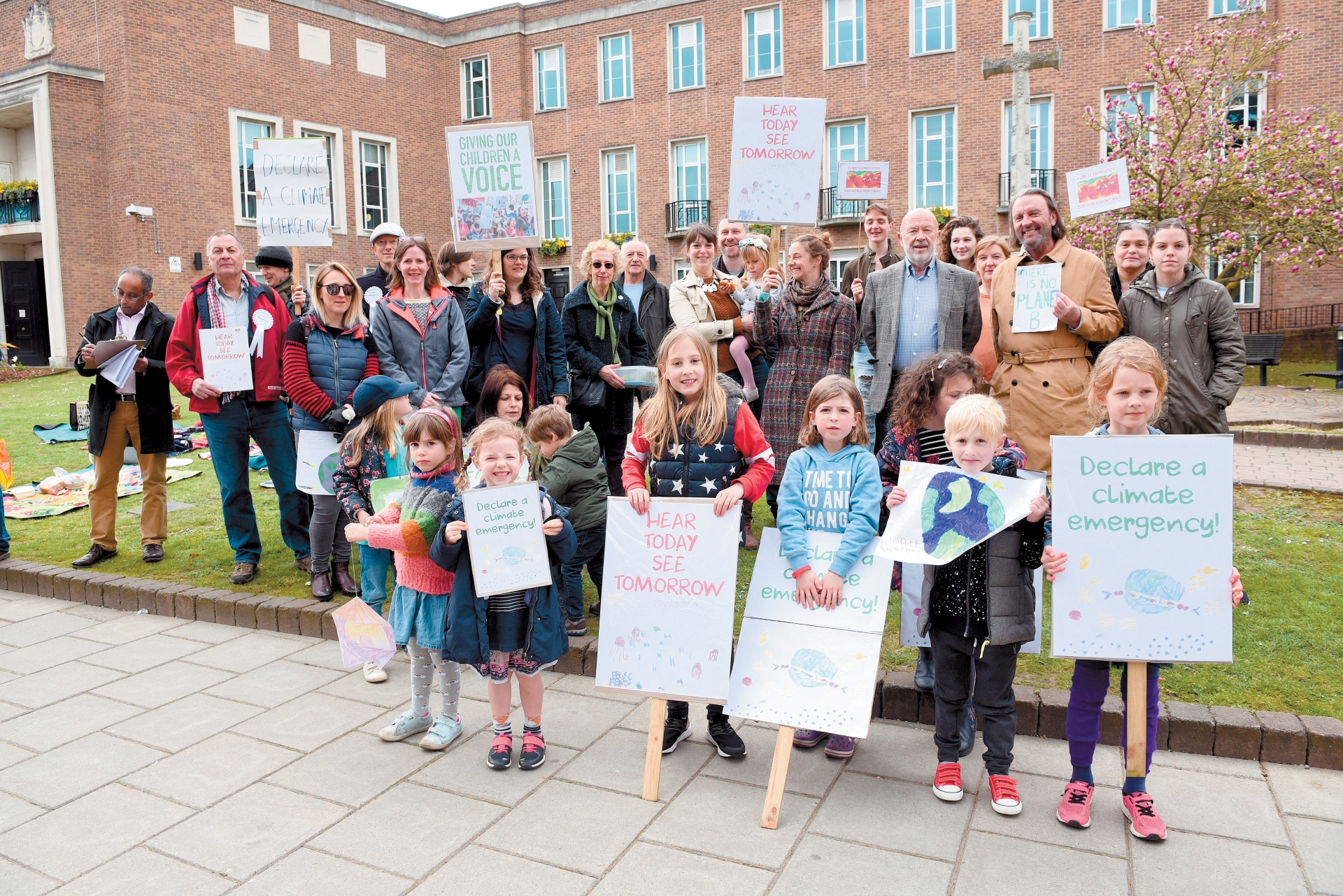 Above: Climate protesters from the RBWM Climate Emergency Coalition group outside Maidenhead Town Hall