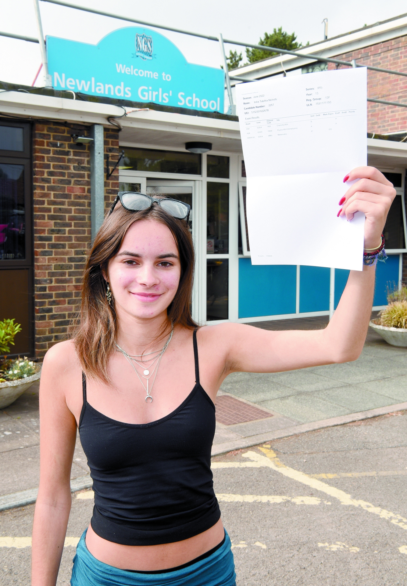 L-R: Anna Howley, Flo Checkley and Abby Jones were happy with their results at Furze Platt Senior School. Below: Inika Nicholls, 17, at Newlands Girls' School, collects her grades. Photos: Nick Parford.