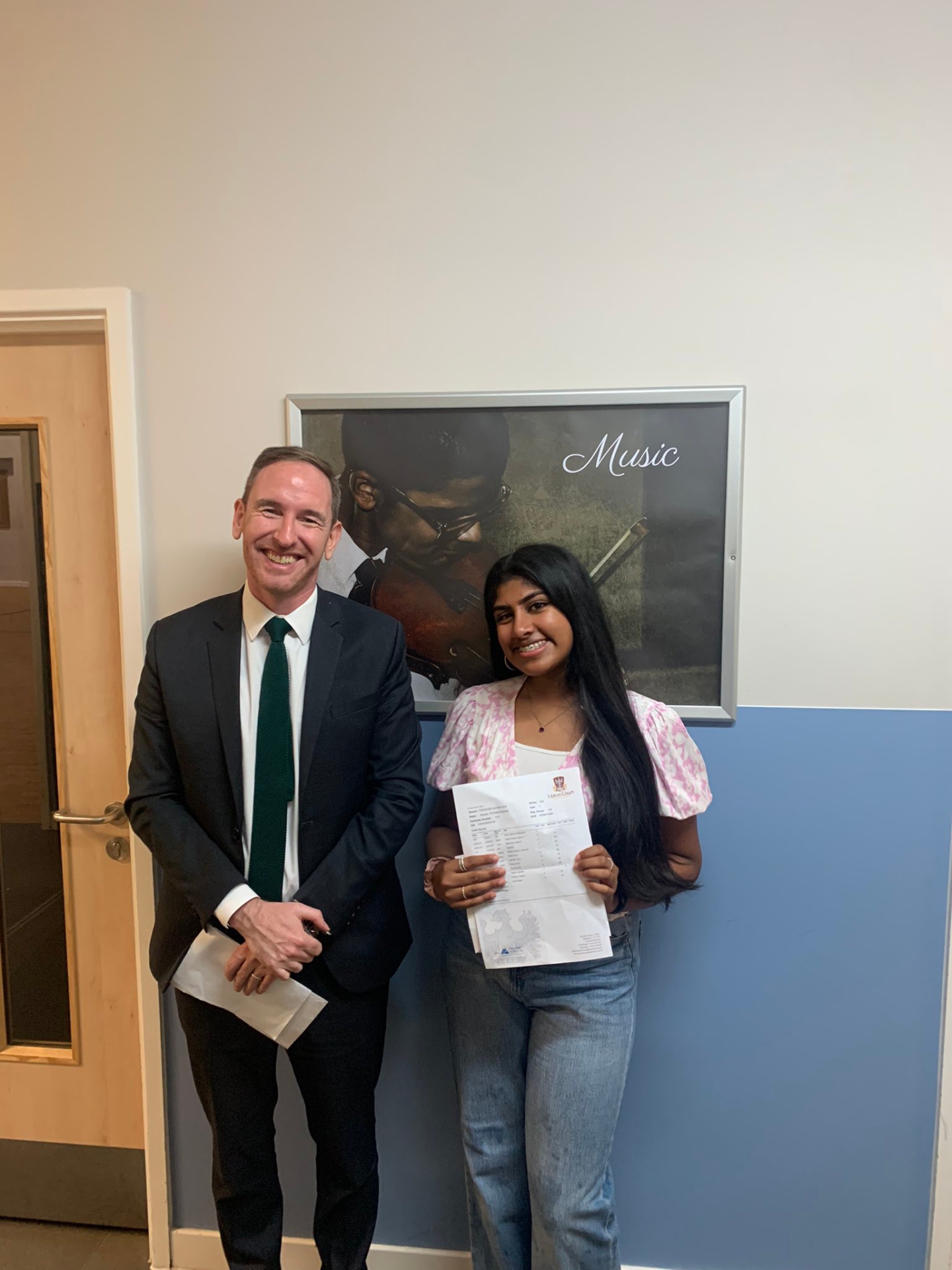 Headteacher Mark Pritchard is pictured below with student Sahana Pathmathasan, who achieved 11 grade 9s and an A grade in additional maths, putting her as one of the top students in the country.