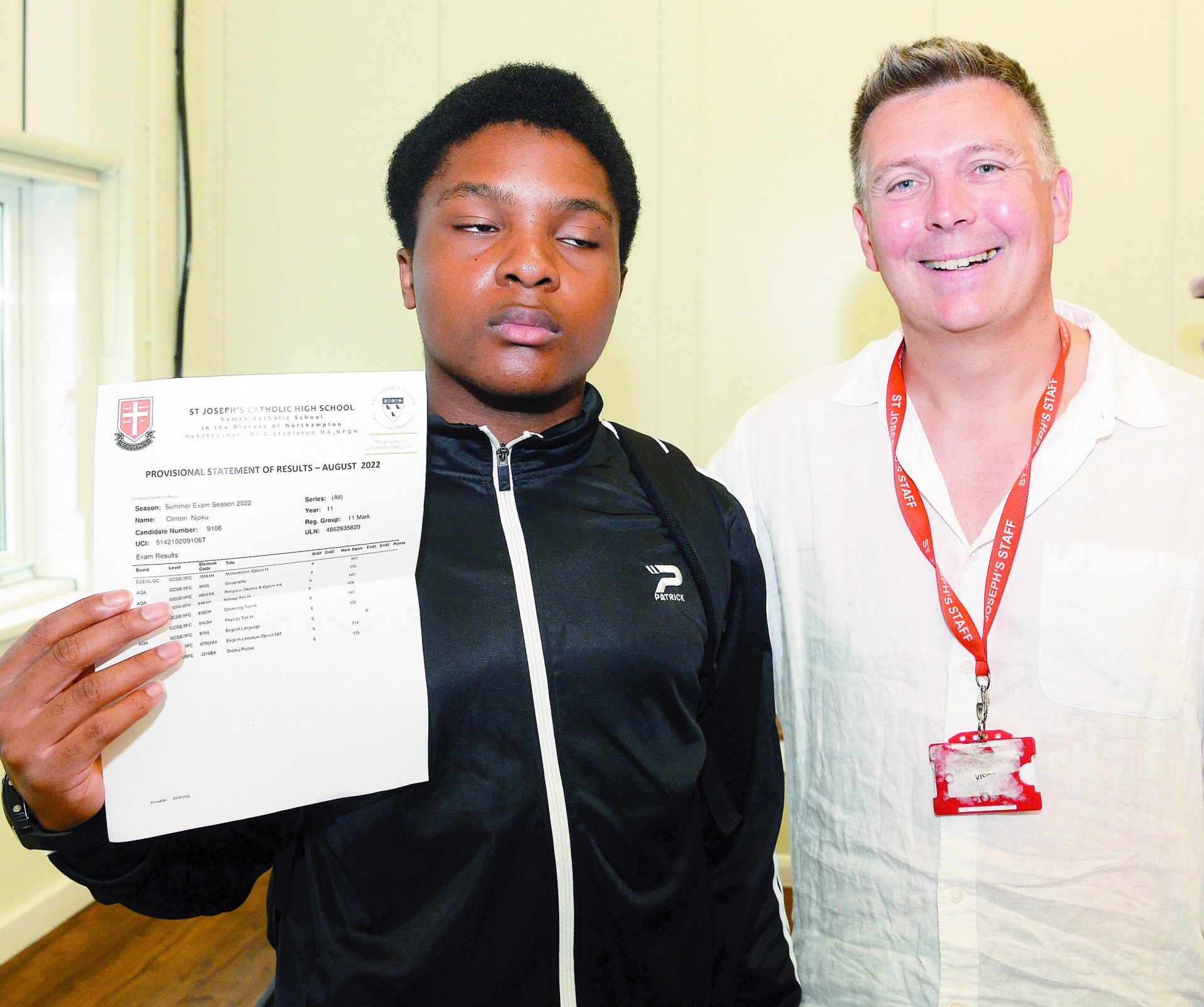 Another inspiring story from St Joseph’s School in Slough. Clinton Njkou is completely blind but that didn’t stop him achieving some of the highest results at the school, with one 9, four 8s and three 6s. He has ambitions to work in accounting or biomedicine. Ft @NickParford pic.twitter.com/RMrIxcWpIB