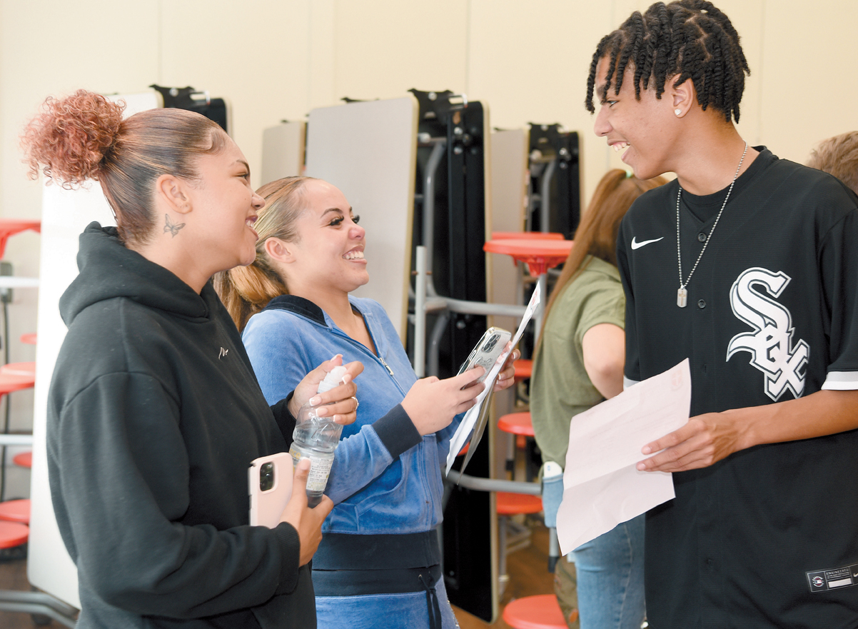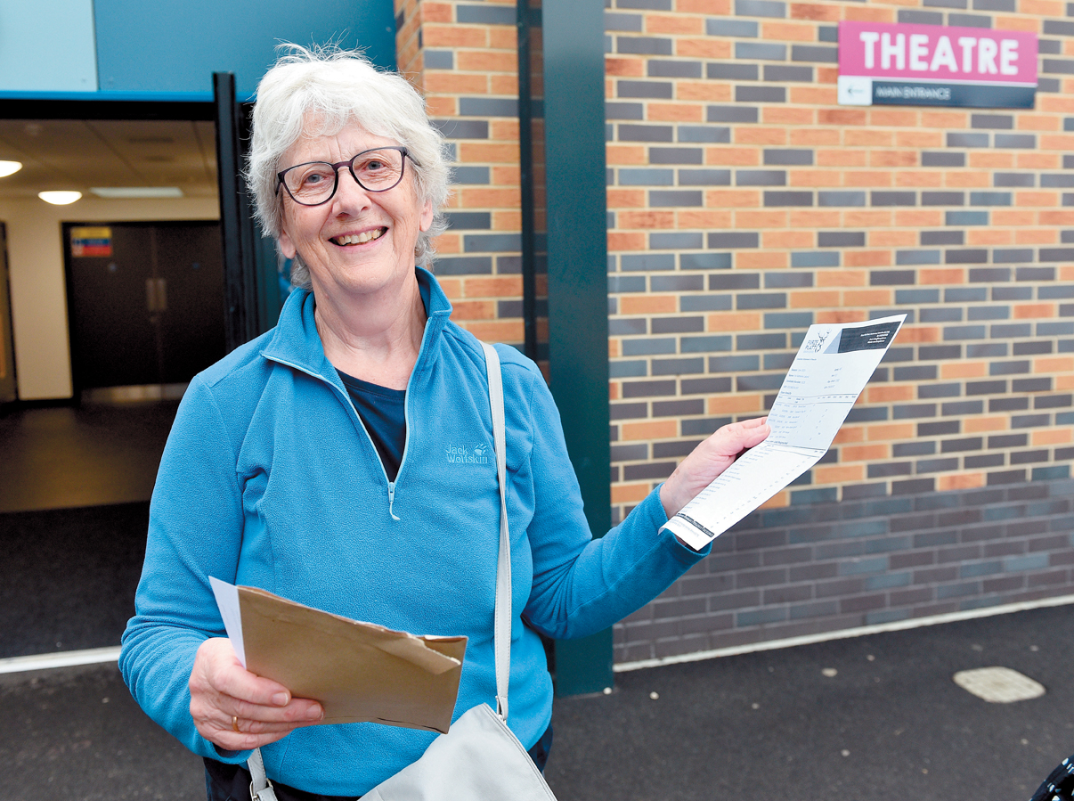 Pat Lakovic was kind enough to stop for a photo as she picked up granddaughter Iris' results.