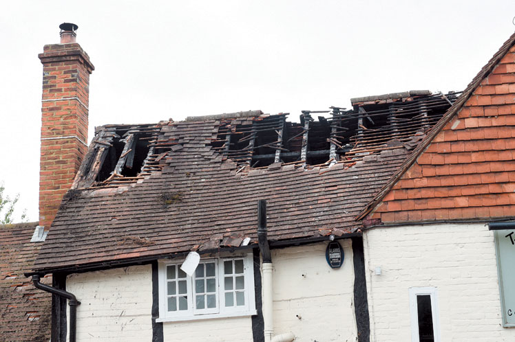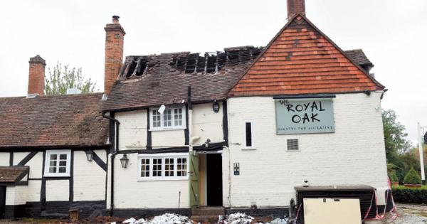 The blaze occurred on the first floor and roof space of the Royal Oak in Frieth Road. No people were injured.