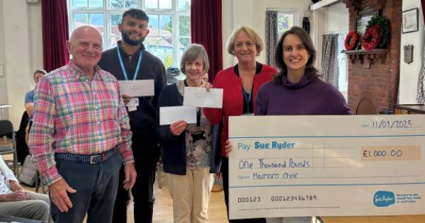 Harmony Choir, which rehearses at Peppard War Memorial Hall, donated £1,000 to Sonning Common Primary School, £500 to Sue Ryder, £500 to Duchess of Kent Hospice, and £250 Thames Valley Animal Welfare. Rachel Salmons, headteacher of the primary school, said the money would help fund repairs to the village swimming pool which is managed by the school.