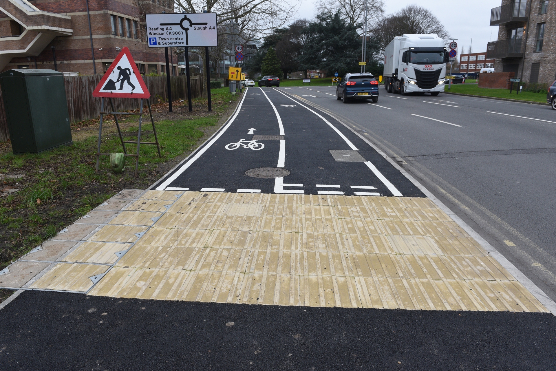 The new two-way cycle path in Forlease Road begins at the junction with Moorbridge Road and joins A4 Bath Road – formerly it was a section of pavement.