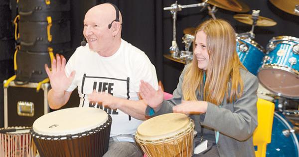 Ex-Status Quo drummer Jeff Rich visited The Langley Academy where he taught pupils about the history of drums before all students had the chance to get involved and play percussion.