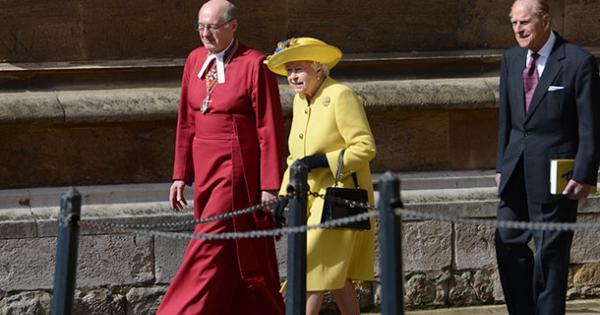 Sunshine followed the showers as the Queen attended the Easter Service on a rainy morning at St George's Chapel in Windsor Castle today.