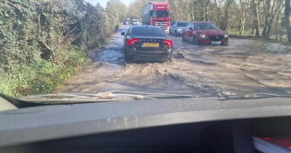 Video and images on social media showed cars and lorries cautiously negotiating a long-stretch of flood water, which had sprung up along Winchbottom Lane and Marlow Road.